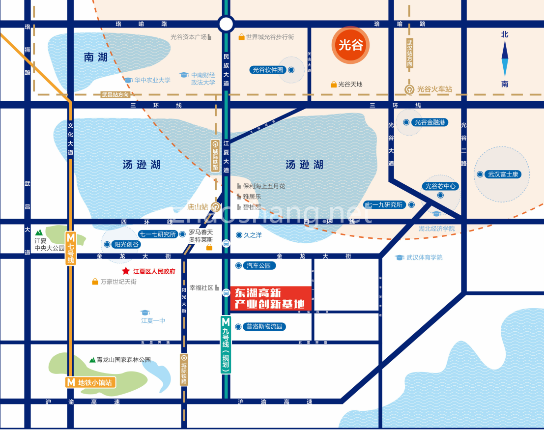 交通配套: 5公里可达庙山城铁站,20分钟可达G50沪渝高速出入口,四环入口全线通车,15分钟到达三环线出入口。距离庙山开发区管委会10分钟车程,距光谷广场25分钟车程,距武汉火车站、武昌火车站35分钟车程。