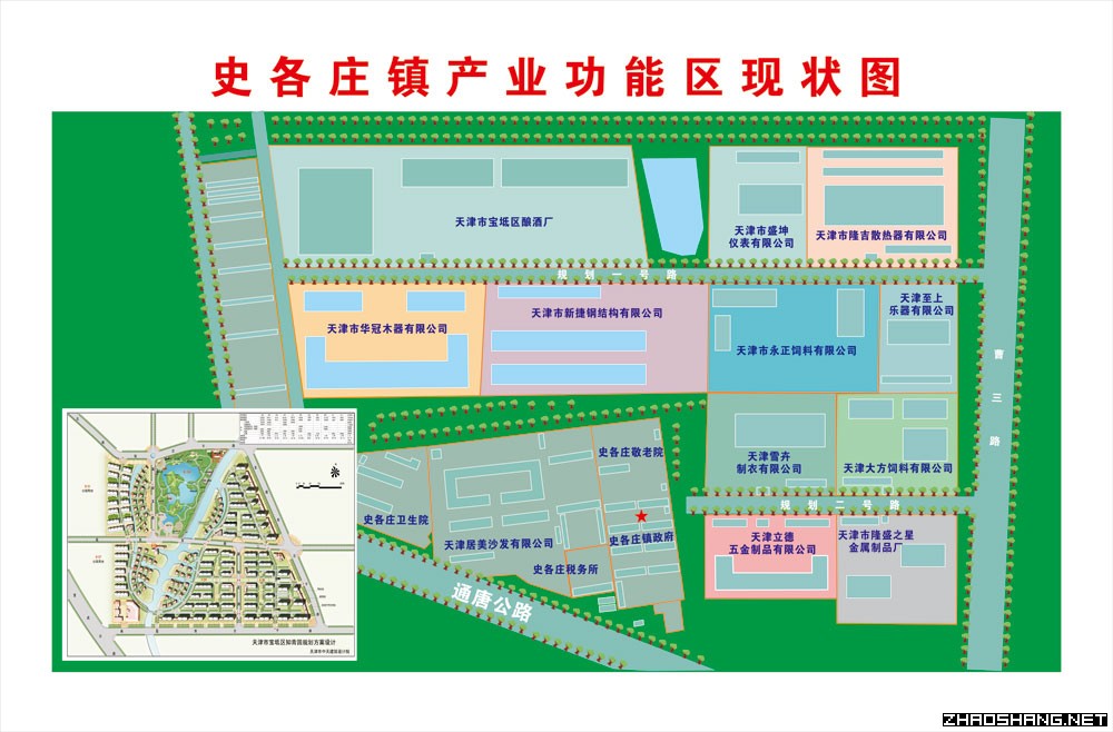 史各庄镇,位于宝坻区城西通唐公路北侧,驻地杨辛庄,距城中心6公里,该镇地理位置优越,交通方便,是开发投资的好地方,镇医院是宝坻区城西最大的医院,该镇总面积38.75平方公里,耕地面积26570亩,总人口22430人。镇政府驻地史各庄,位于县城西北15.5公里。辖区有17个行政村(一村、二村、三村、西疃、南疃、北辛庄、武各庄、崔马庄、潘庄子、二合庄、秦各庄、张各庄、王村、口上、韩各庄、杨庄子、新村)。2003年,镇党委、政府多次深入企业搞调研,针对全镇个体私营企业规模不大,项目不新,发展不快的实际,提出了“念观念经,打区位牌,走开放路,吃环境饭”的项目发展思路,进一步优化全镇的投资环境,大力实施项目带动战略,推动了全镇经济的再次腾飞。截止年底,新上项目12个,完成项目投资4100万元,其中投资100万元以上的项目有:廊坊彤鑫脚轮有限公司投资200万元的创脚轮项目、王村欣兴塑料厂投资320万元的塑料管件项目、廊坊昌盛线缆有限公司投资350万元的电力电缆项目、投资500万元的新村钢衫项目、投资1500万元的宇龙桥架项目。项目建设为企业新增产值达7500万元。 镇党委、政府大力发展电瓶、电线电缆、阻燃管、板房、注塑、食品批发六大市场建设,积极引导企业培育市场,提高技术含量,加大投资力度,使企业类型逐步向高、精、强方向发展。2003年,盛安、昌盛等十几家企业率先通过ISO9002国标质量体系认证,成为全镇线缆行业的排头兵;欣能蓄电池畅销全国各大中城市,并获省优产品称号;文辉电池有限公司被农业部命名为全国创名牌企业;王村板房业更是异军突起。同时,通过投资3000万元的“金三角”工业区二期工程的顺利开工,打造起全镇私营企业经济发展的航母平台。