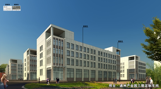 邢台通州产业园位于邢台高新技术产业开发区。位于京津冀三小时交通经济圈;邢台已成为京津冀城市群中具有重要带动作用的节点城市。 公路、铁路、航空“三位一体”综合运输体系即将构成,“三小时出海、一小时进京,半小时上天”的大交通格局也在变为现实; 区域定位:发展面向北京、天津及河北产业带的新型产业集群。 邢台通州产业园项目定位以高端装备制造、新能源、研发设计企业为核心,打造集标准化厂房、科技研发楼宇、集定制厂房、低密度总部、高层办公楼宇、配套商业、公寓为一体的大型产业城市综合体,形成发展总部经济的规模化、现代化的集聚平台。 邢台通州产业园项目项目规划总用地323396.39㎡(485.09亩),总建筑面积34.51万㎡,分三期建设。 一期占地146991.91㎡,建筑面积:15.148万㎡;主要建筑为11座车间、一栋办公楼、一栋职工餐厅。 二期占地120345.03㎡,建筑面积:11.96万㎡,主要建筑为:一栋餐厅、一栋宿舍、二十六栋研发车间。 三期占地56059.45㎡,建筑面积:7.31万㎡,主要建筑为:9栋企业定制车间。 轻钢车间框架综合楼耐火等级均为二级,生产的火灾危险性分类为丙 丁类。办公楼为一类公共建筑。 本工业园区一期为二类工业产业项目,所占比例为30%; 二期和三期为一类工业产业项目,所占比例为70%。